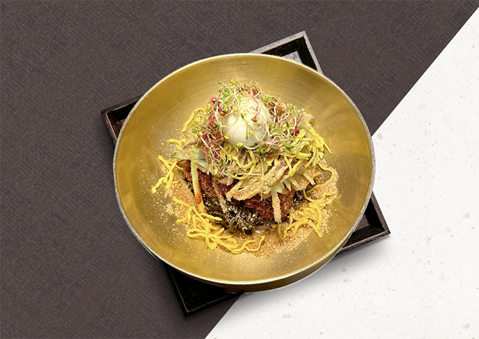각종 해산물로 육수를 만들고 고명으로는 소고기 육전과 배, 오이, 새싹 등이 올라가서 지금까지 드셔보셨던 냉면과는 비주얼 자체가 다릅니다.